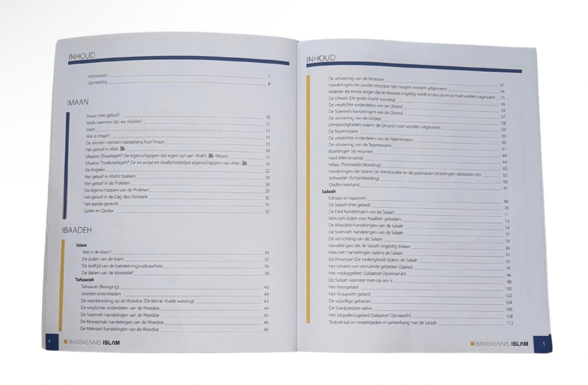 Basiskennis Islam biedt een compacte toegankelijke introductie tot de basis van de islam, met illustraties die het leren makkelijker maken. In tegenstelling tot het uitgebreidere Basiskennis over Islam (300+ pagina’s zonder illustraties), richt dit boek zich op de belangrijkste basisprincipes. Ideaal voor beginners en jongeren/kinderen.